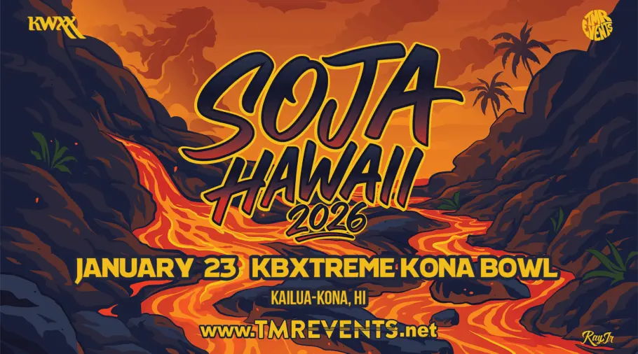Join us for an unforgettable night in Kailua-Kona as Grammy Award Winning Reggae Group SOJA brings their iconic sound back to Hawai‘i! Enjoy a high-energy evening filled with reggae, good vibes, and live music under the island sky. With special performances by Kanaka Fyah and Kabaka Pyramid, this is a show you won’t want to miss.